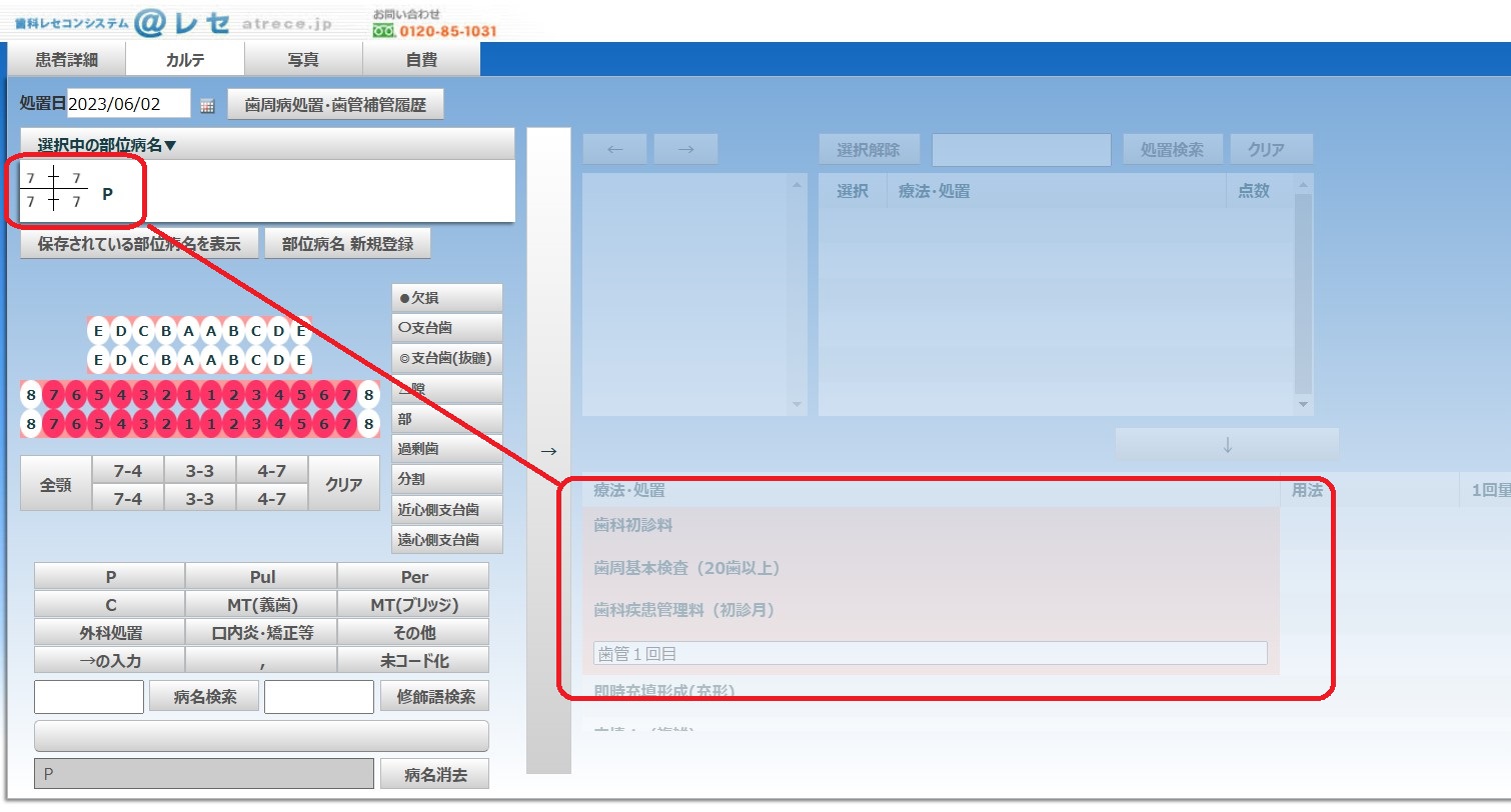 そのままカルテ画面に移動し処置の入力を行ってください。